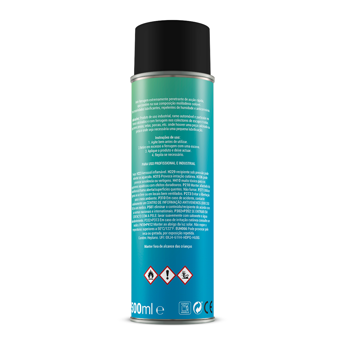 Produto de uso industrial, ramo automóvel e particular em Pemos calcinados e com ferrugem nos colectores de escape e rodas. Injectores presos, velas, porcas, etc. onde houver uma peça calcinada ou presa e onde seja necessária uma pequena lubrificação.