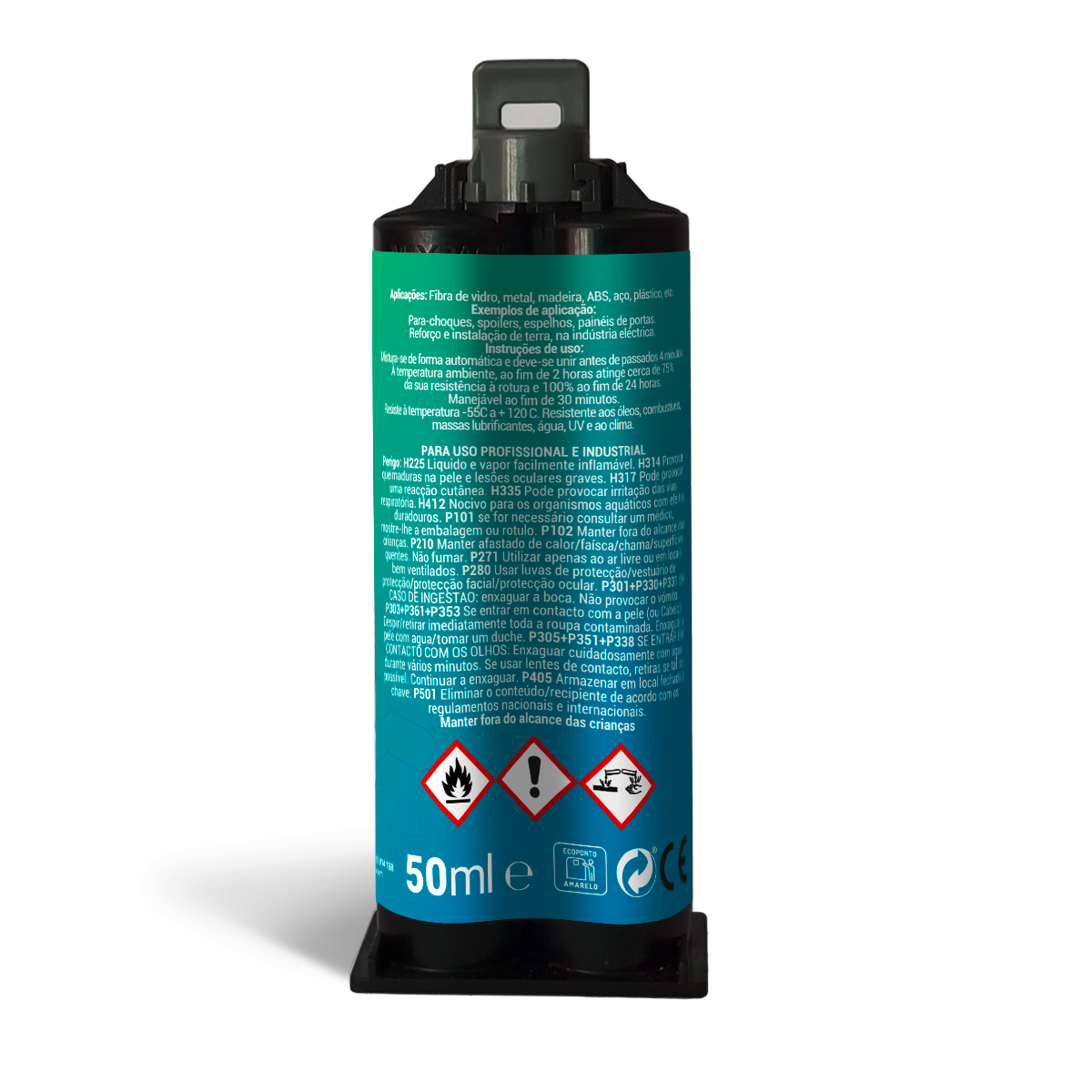 Mistura-se de forma automática e deve-se unir antes de passados 4 minutos. À temperatura ambiente, ao fim de 2 horas atinge cerca de 75% da sua resistência à rotura e 100% ao fim de 24 horas.