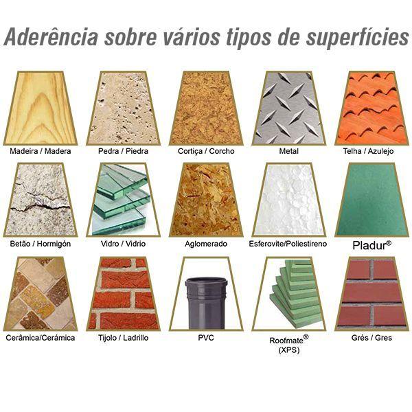 - Cola à base de MS Polímeros especialmente indicada para a generalidade dos materiais de construção, tais como: pedra, granito, mármore, betão, espelhos, vidro, gesso cartonado, PU, PVC, plásticos rígidos, superfícies esmaltadas, cerâmica, cobre, chumbo, zinco, lata, alumínio, metais, ligas, aço inoxidável, HPL e madeira.