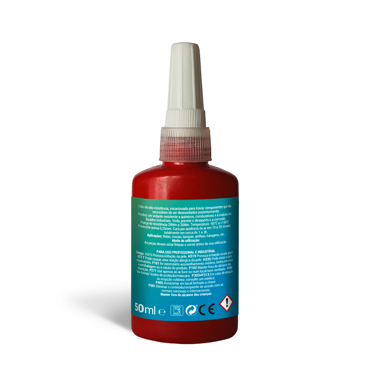 Cola de alta resistência, vocacionada para travar componentes que não necessitem de ser desmontados posteriormente.