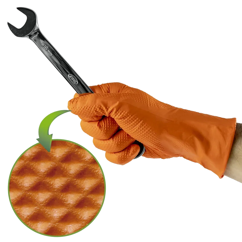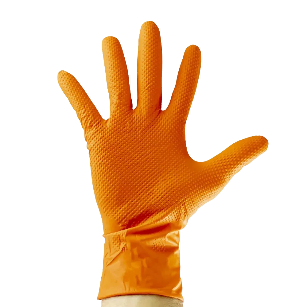 Luvas de Nitrilo Texturadas Laranja – Máxima Aderência e Resistência Profissional
