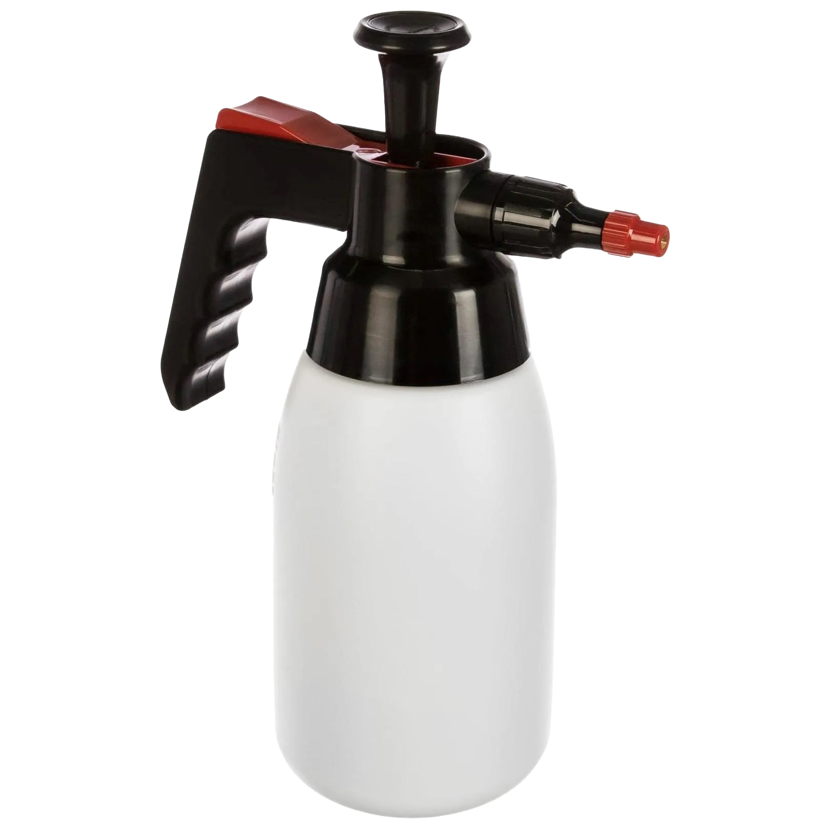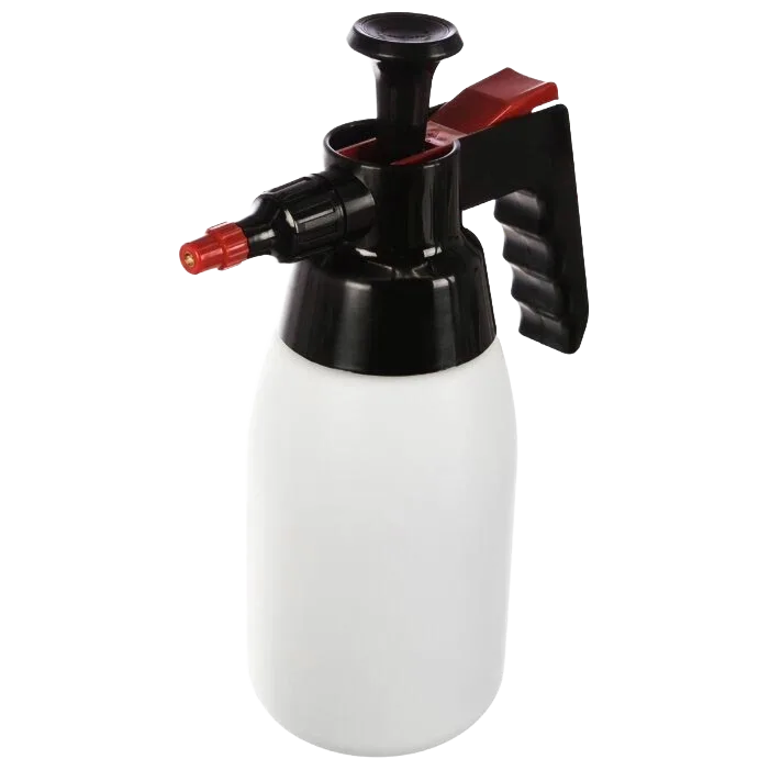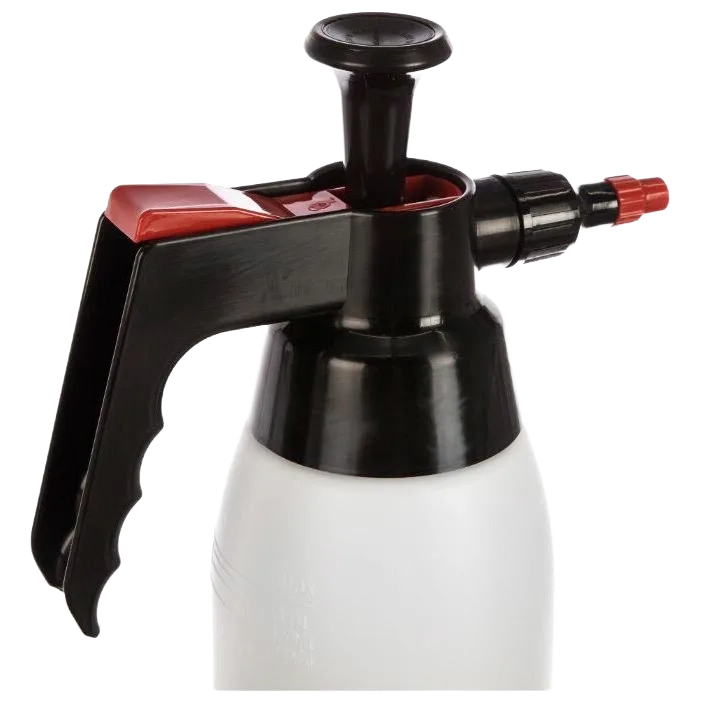 Pulverizador de pressão com válvula PA (Poliamida) com tanque plástico de 1L muito resistente a impactos, especialmente desenvolvido para aplicação de produtos à base de solventes e alcalinos.