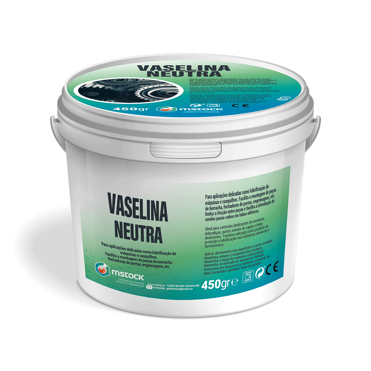 Facilita a montagem de peças de borracha, fechaduras de portas, engrenagens, etc. Reduz a fricção entre peças e facilita a introdução de sondas passa-cabos em tubos elétricos.