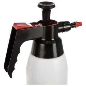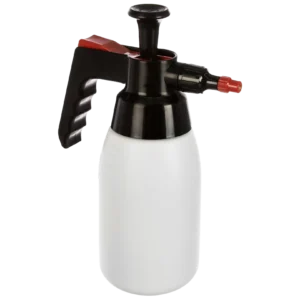 Pulverizador de pressão com válvula PA (Poliamida) com tanque plástico de 1L muito resistente a impactos, especialmente desenvolvido para aplicação de produtos à base de solventes e alcalinos.